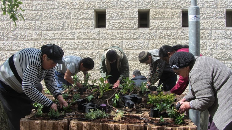 את הצמחים בערוגה המוגבהת שתלו אנשי גיל הזהב.